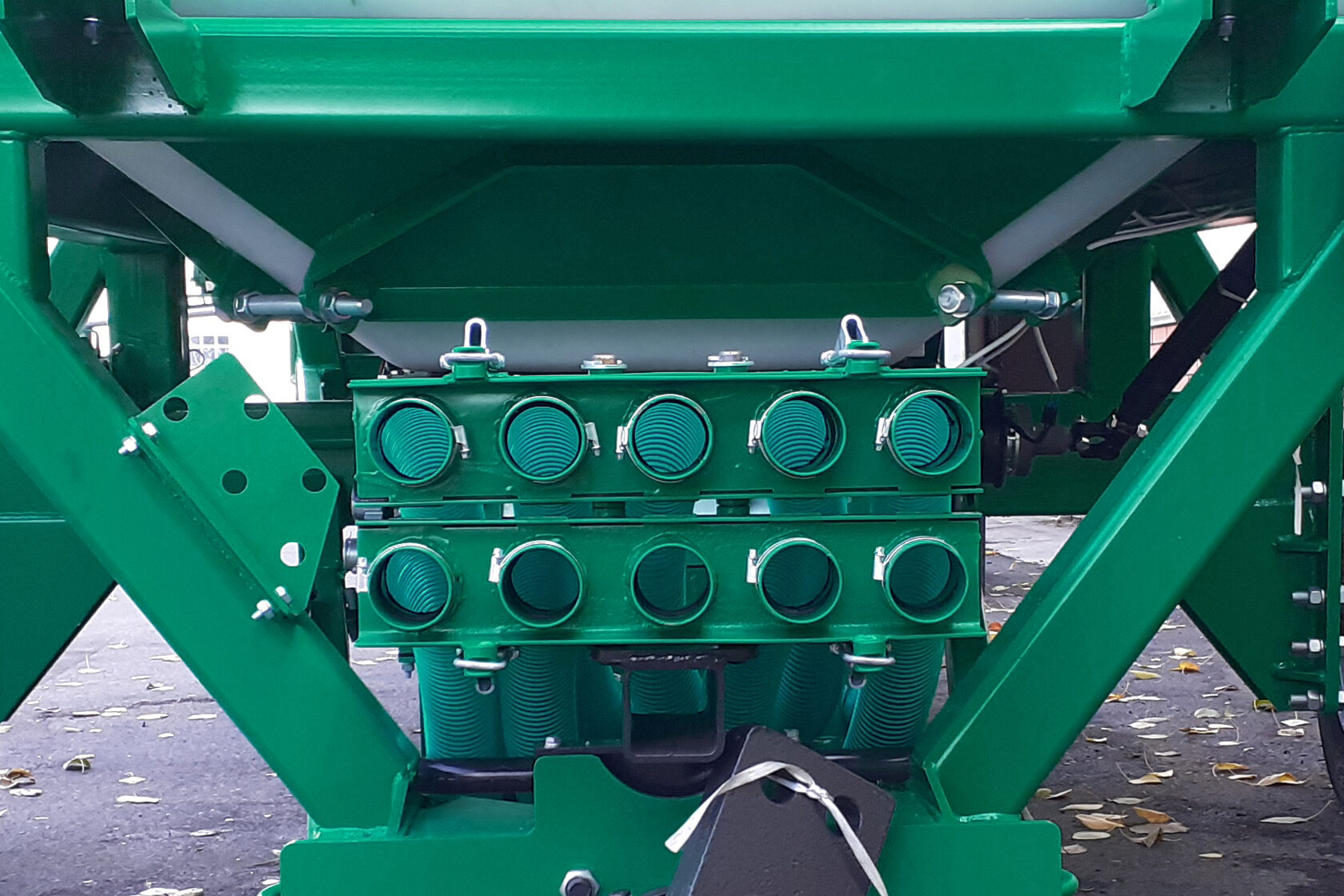 Пневмосистема бункера обеспечивает от минимальной нормы высева 0,5 кг/га для мелкосеменных культур до максимальной нормы высева 800 кг/га. Бункер укомплектован двигателями-редукторами вариаторного типа (по одному на каждую секцию бункера) и универсальными катушками-дозаторами подачи высевающего материала.