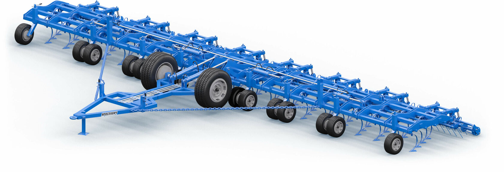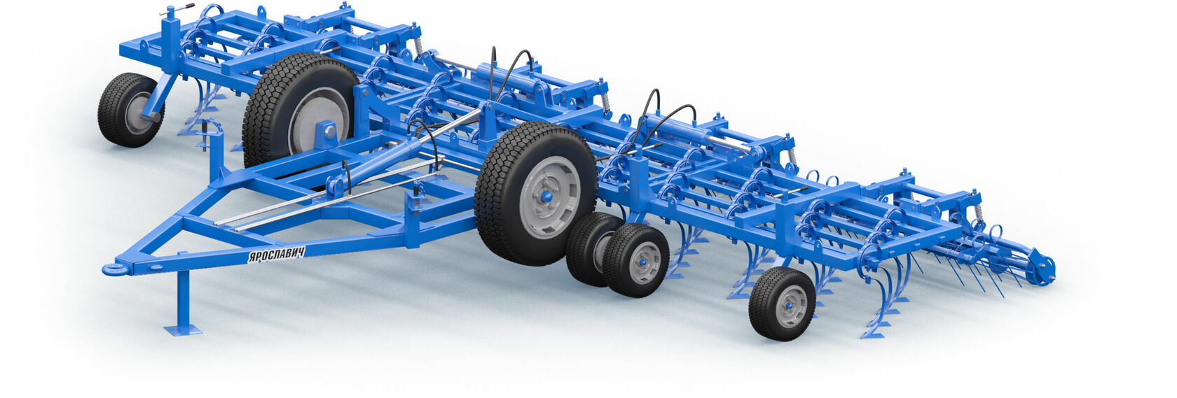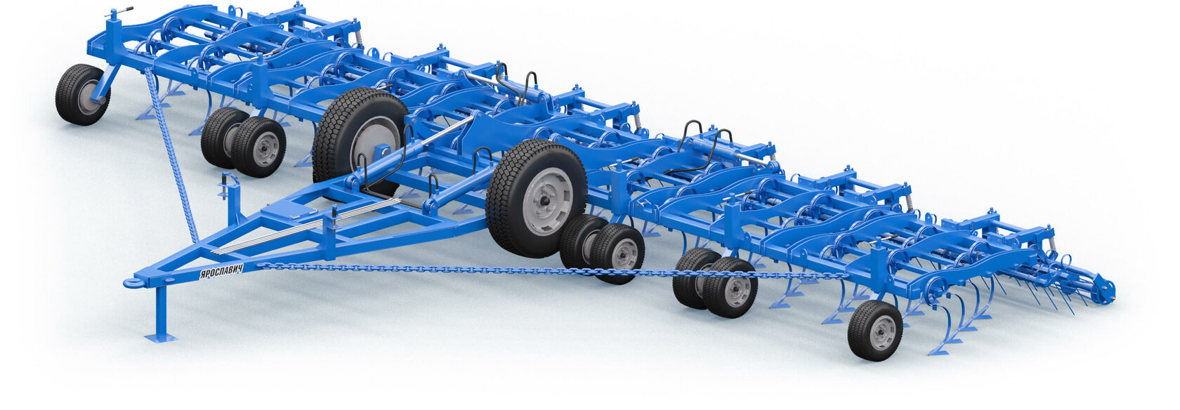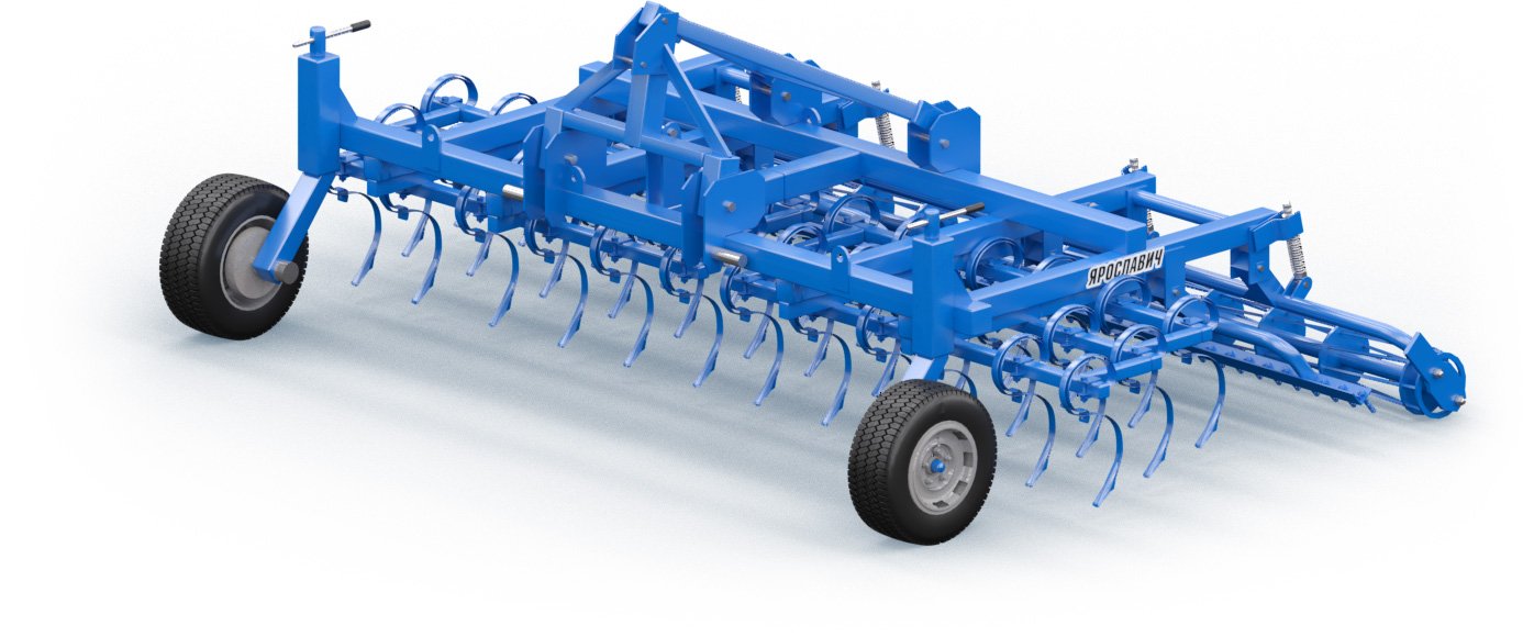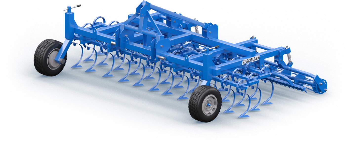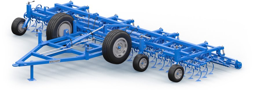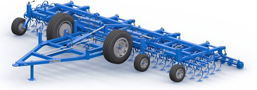 На транспортных колесах расположены гидроцилиндры с гидрозамками, что бы исключить самопроизвольное опускание культиватора.