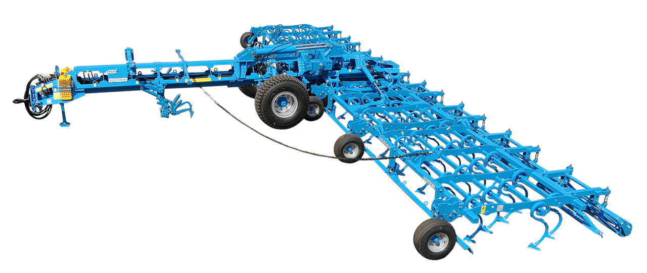 Культиватор раскладывается и складывается при помощи гидроцилиндров, работающих от гидросистемы трактора. Одна пара гидроцилиндров отвечает за раскладывание крыльев, вторая за перевод их в горизонтальное положение.