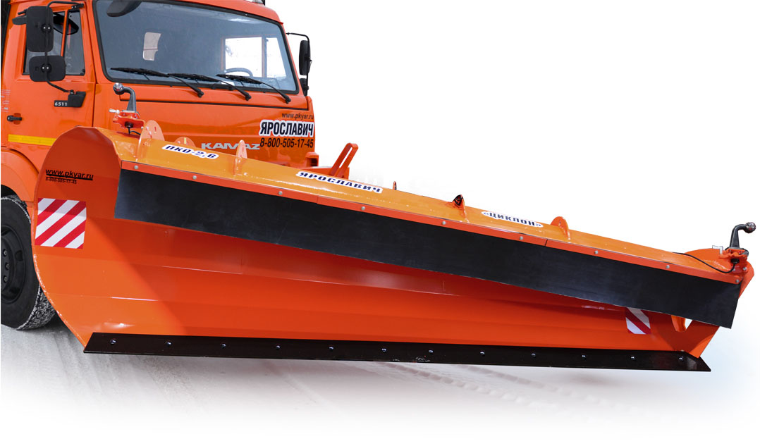 Отвал передний косой ПКО-2,6 «Циклон» — это удобный и надежный отвал, который применяется для скоростной патрульной очистки дорог от свежевыпавшего снега с отбрасыванием его на значительное расстояние (до 15 метров), а также удаления шуги и снежного наката с проезжей части. Рабочая скорость при эксплуатации отвала — 60 км/час, поэтому он используется преимущественно на крупных магистральных автодорогах, где выпавший снег необходимо убирать в сжатые сроки. Благодаря изгибу крыла отвала и углу атаки снег при работе не попадает на кабину, а отбрасывается далеко за обочину, не создавая помех движению транспорта.